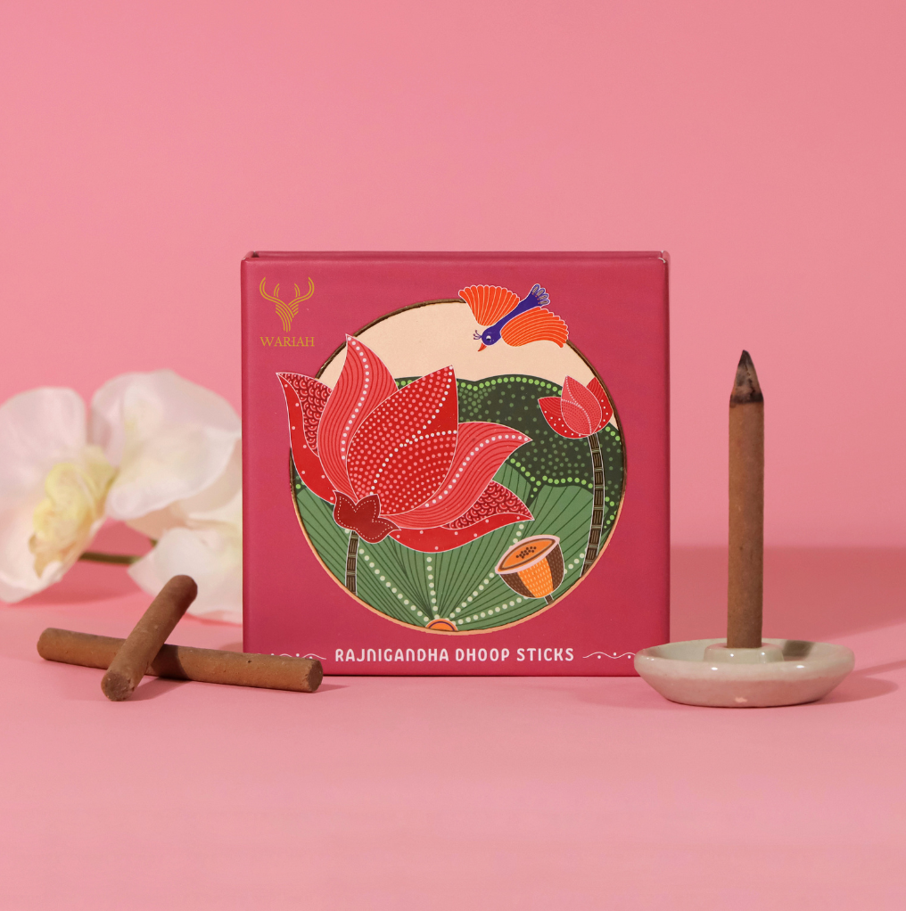 Each stick is meticulously hand-rolled by rural women, ensuring a touch of authenticity and care in every piece. With a burn time of 40-45 minutes, Wariah Dhoop Sticks provide a sustained aromatic experience. Ethically sourced ingredients and a charcoal-free composition contribute to a healthier and more environmentally friendly experience.